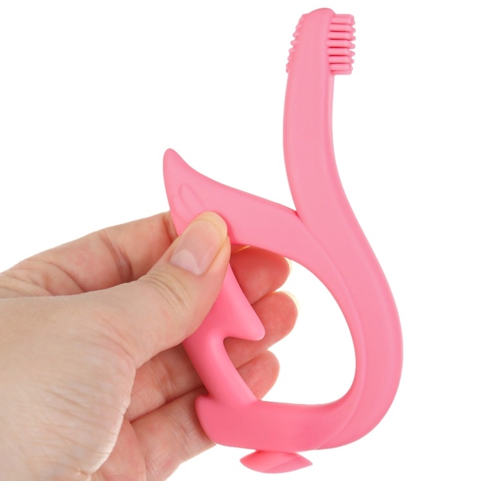 Прорезыватель - щеточка силиконовый «Лебедь», на присоске, цвет розовый, Крошка Я