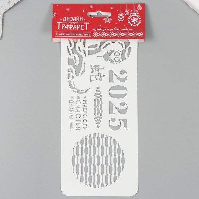 Трафарет новогодний пластиковый "Новогодняя змея 2025", размер 10х25 см