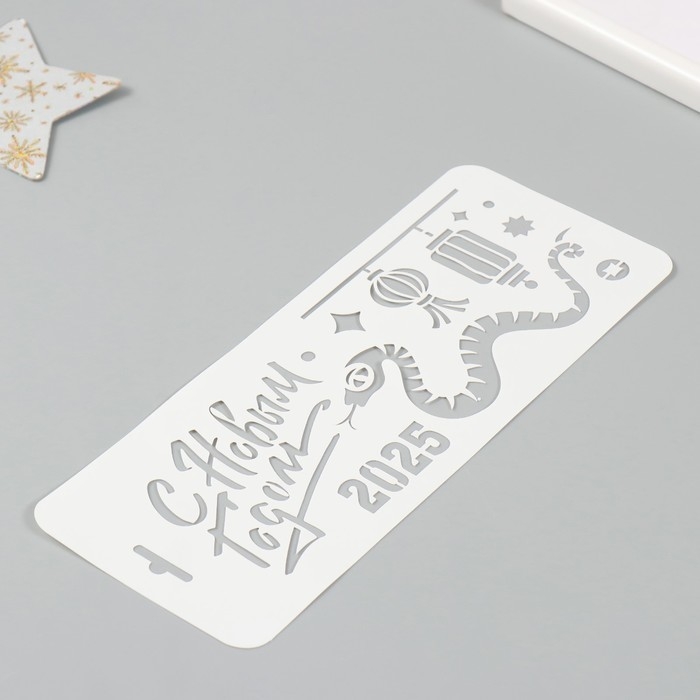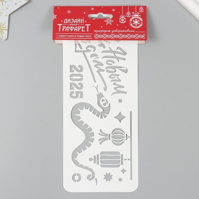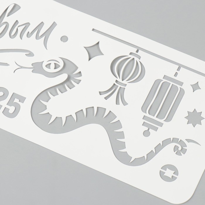 Трафарет новогодний пластиковый "Змея и китайские фонарики 2025", размер 10х25 см