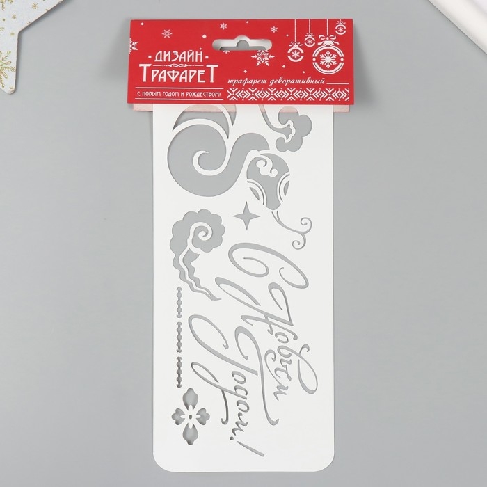 Трафарет новогодний пластиковый "С Новым Годом. Змея", размер 10х25 см
