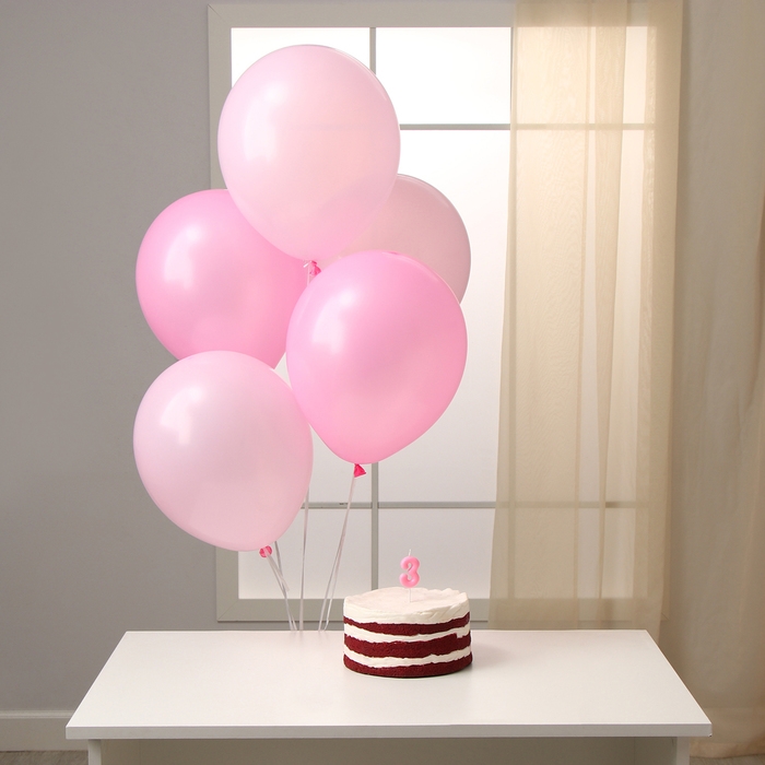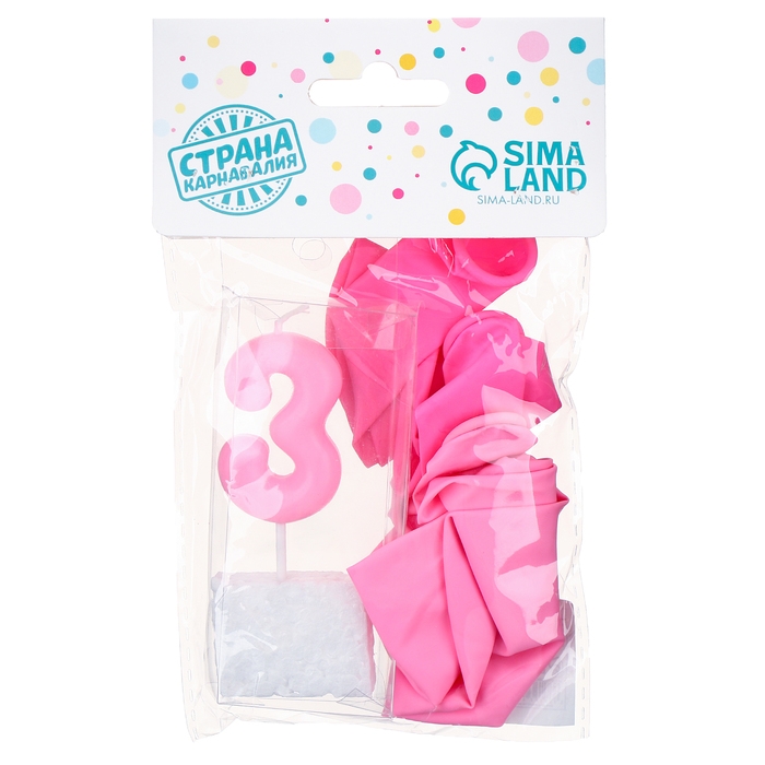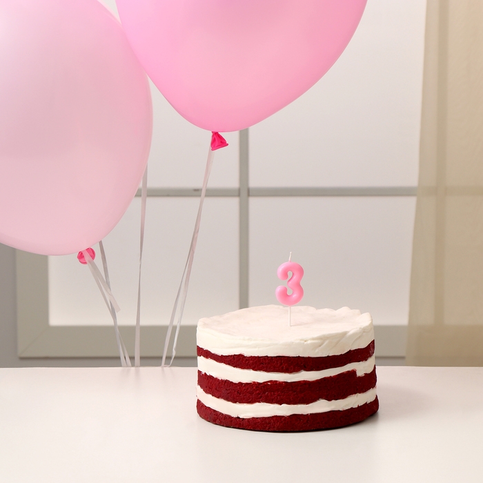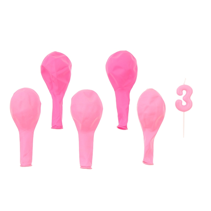 Свечи для торта + 5 шаров, цифра 3, розовая