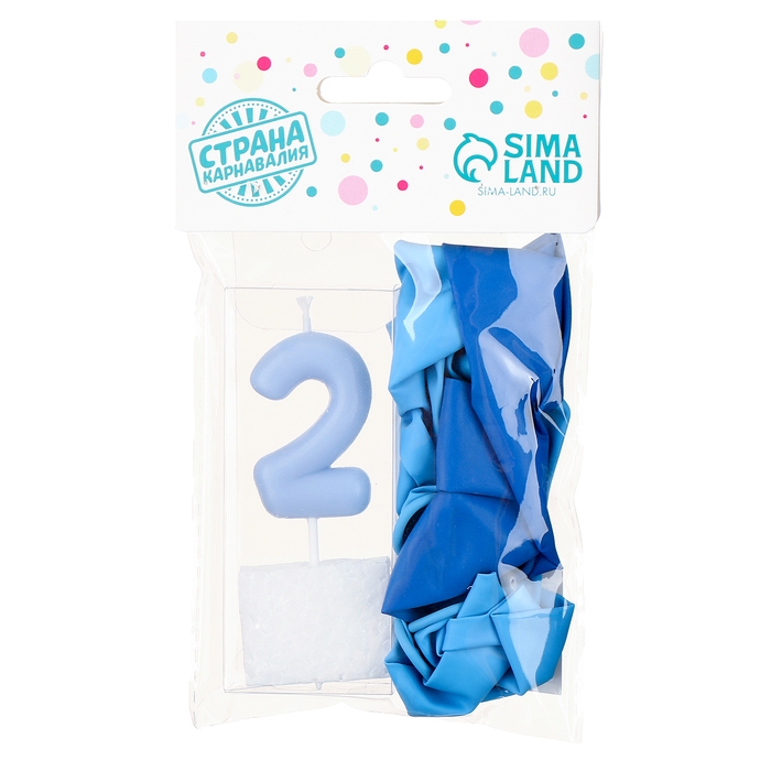 Свечи для торта + 5 шаров, цифра 2, голубая