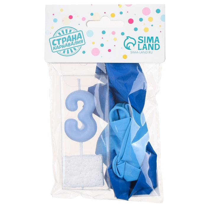 Свечи для торта + 5 шаров, цифра 3, голубая