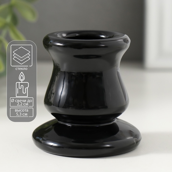 Подсвечник стекло на 1 свечу "Лучано" d=2,2 см прозрачный черный 5,5х5,2х5,3 см