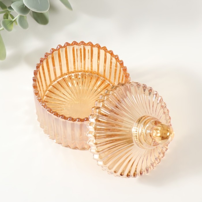 Шкатулка стекло "Гофре и купол" прозрачная карамель 6,5х6,5х8,5 см
