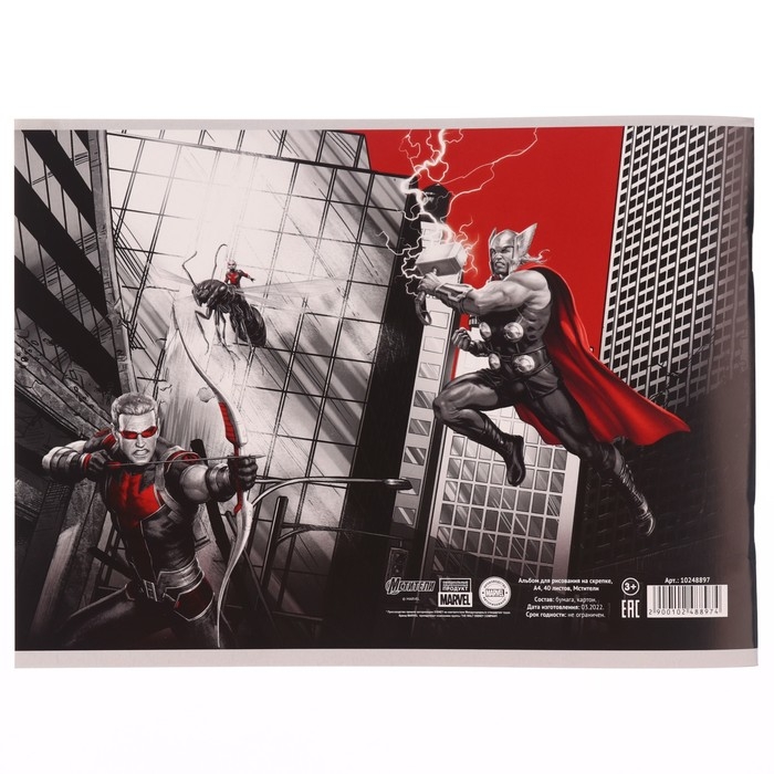 Альбом для рисования на скрепке, А4, 40 листов, Мстители