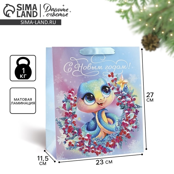 Пакет подарочный новогодний ламинированный «Змея 2025», ML 23 х 27 х 11.5 см , Новый год
