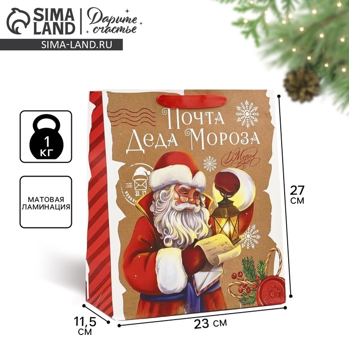 Пакет подарочный новогодний ламинированный «Почта Деда Мороза», ML 23 х 27 х 11.5 см , Новый год