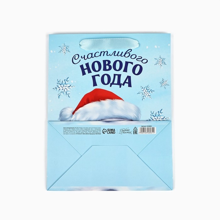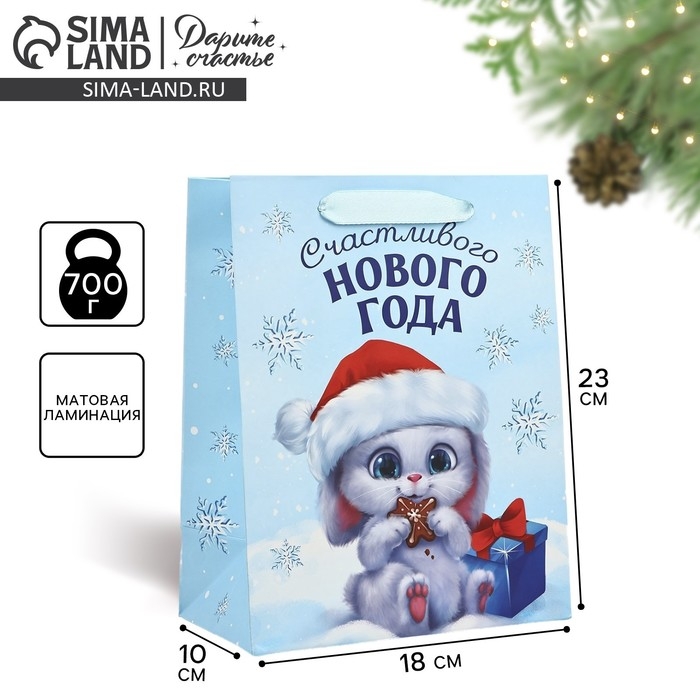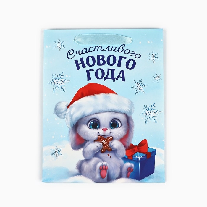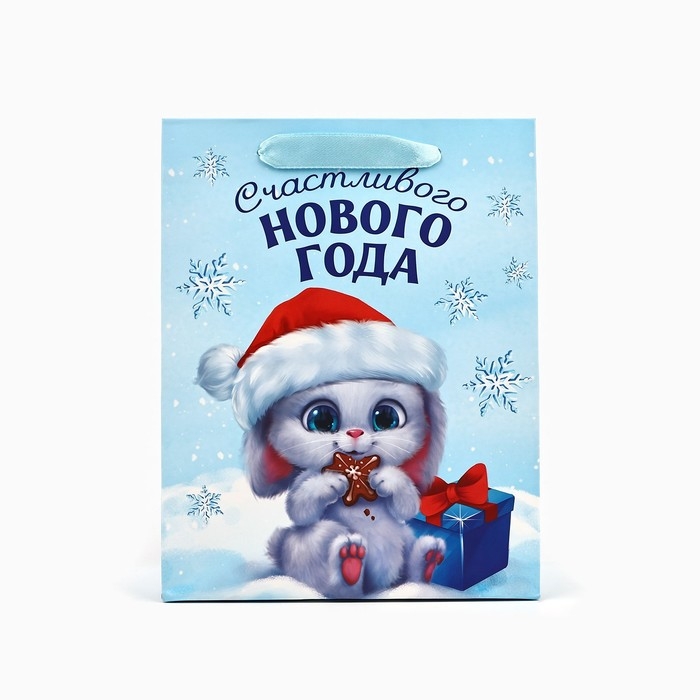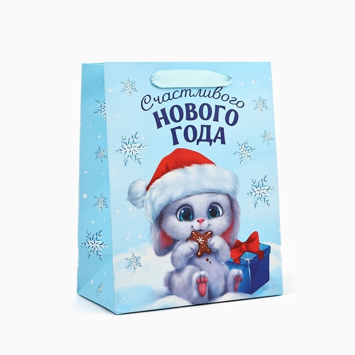 Пакет подарочный новогодний ламинированный «Счастливого Нового года», заяц, MS 18 х 23 х 10 см , Новый год