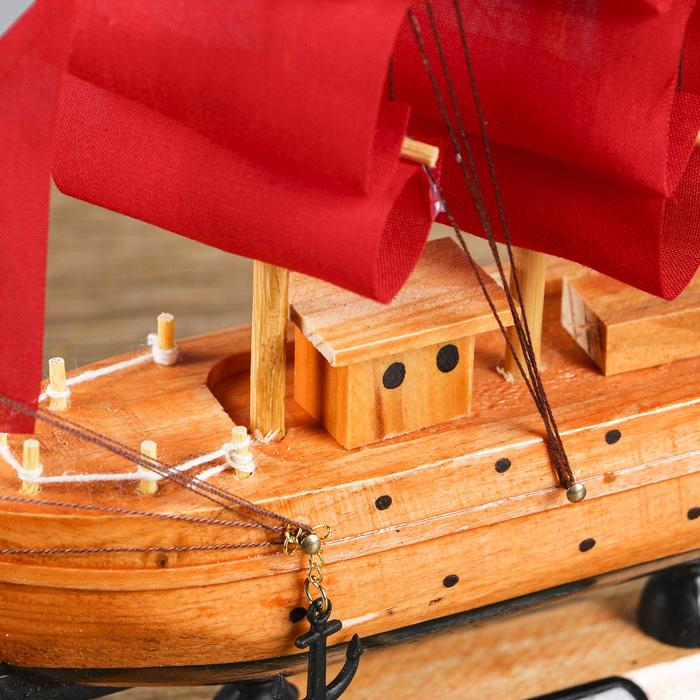 Корабль сувенирный малый «Дакия», борта светлое дерево, паруса алые, 5×23×22 см