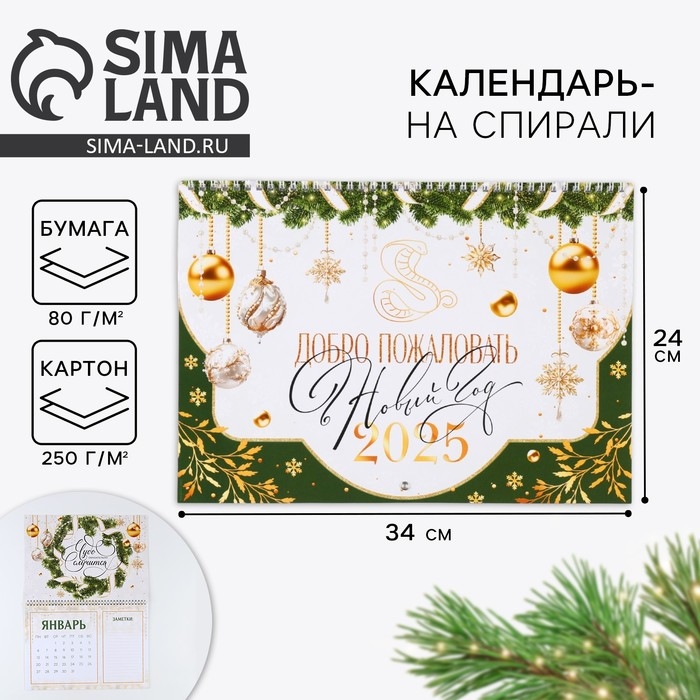 Календарь 2025 настенный, на спирали «Новый год: Добро пожаловать», 34 х 24 см