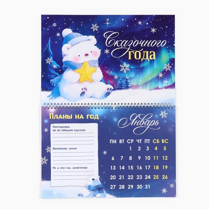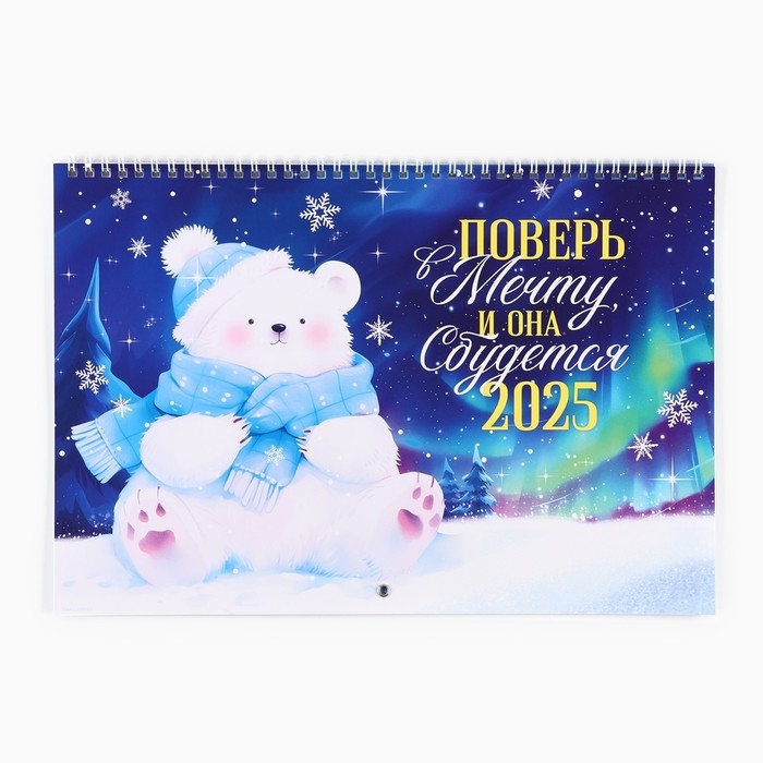 Календарь 2025 настенный, на спирали «Новый год: Белый мишка», 34 х 24 см