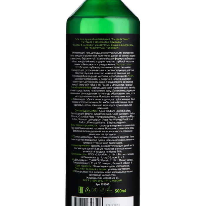 Гель для душа обновляющий "Сила 7 Элементов природы" Тыква и Томат, 500 мл