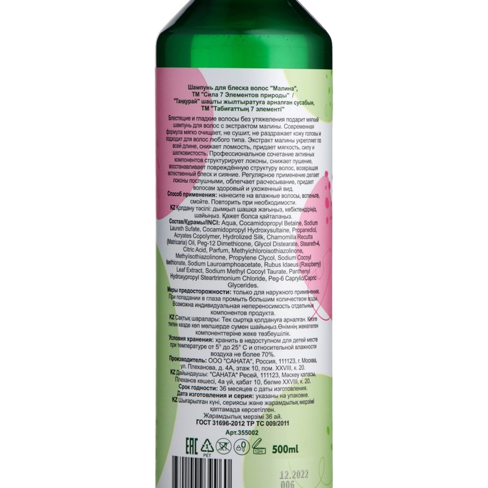 Шампунь для блеска волос "Малина", ТМ "Сила 7 Элементов природы", 500 мл