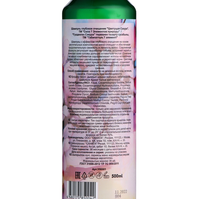 Шампунь глубокое очищение "Сила 7 Элементов природы" Цветущая Сакура, 500 мл