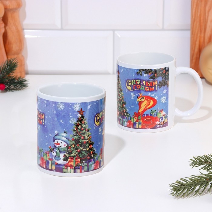 Кружка новогодняя, сублимация "С Новым Годом!" символ года, снеговик, 320 мл
