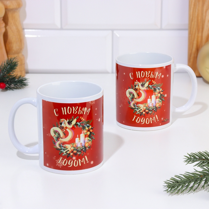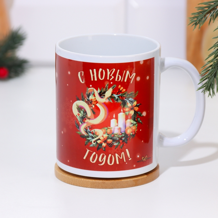 Кружка новогодняя, сублимация "С Новым Годом!" символ года, венок, 320 мл