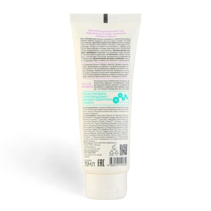 Детский защитный крем Natura Siberica Siberica Бибеrika под подгузник "Мамина забота", 75 мл 1065677