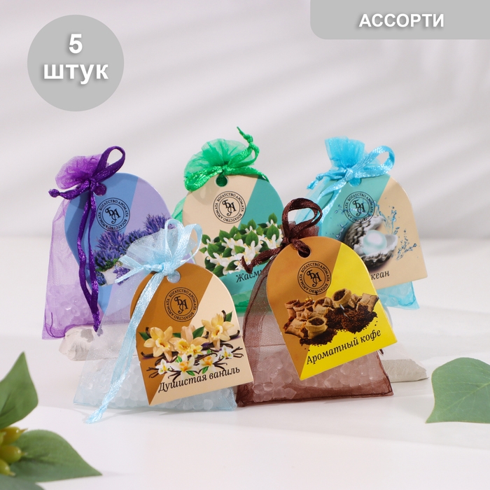 Аромагорошины в подарочном пакете, набор 5 шт по 10 гр, ассорти ароматов