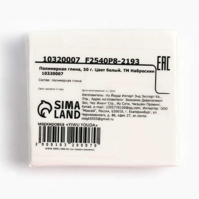 Полимерная глина для лепки, 50 г запекаемая, цвет белый «Наброскин»