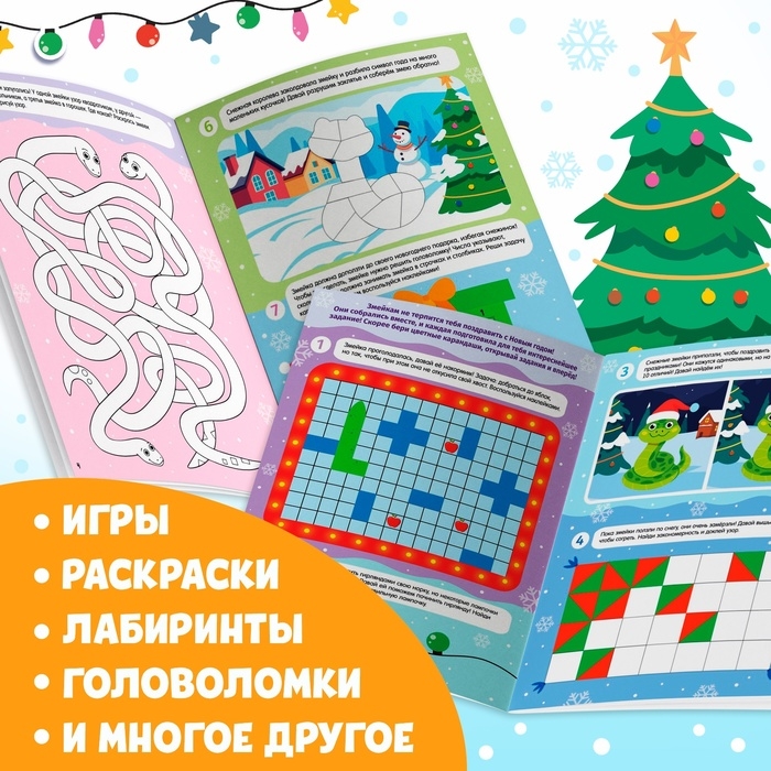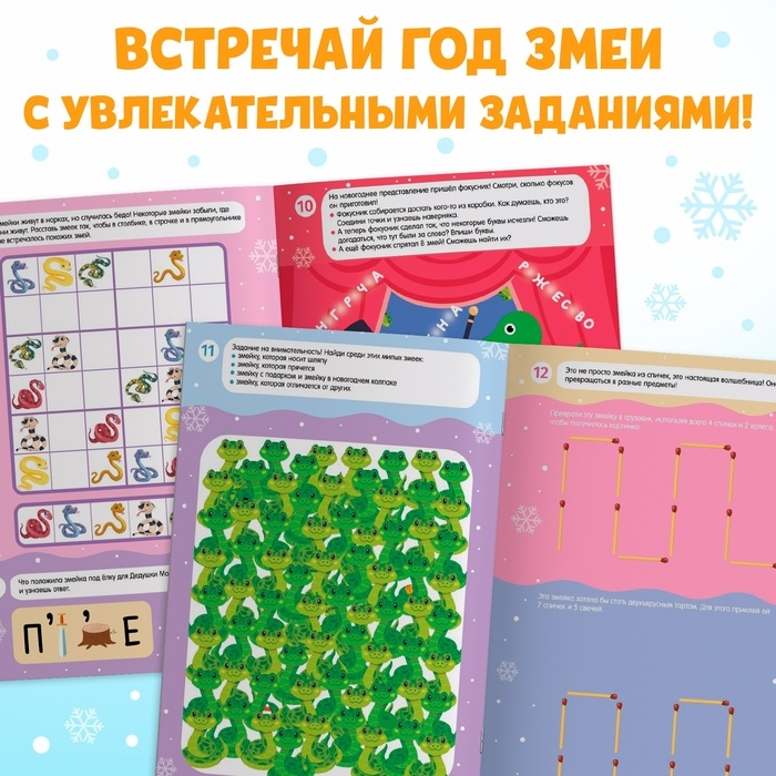 Новый год! Активити-книга с наклейками «Удивительные змейки», 130 наклеек