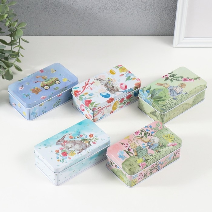 Шкатулка металл "Пасхальный кролик" МИКС 12х7х4 см