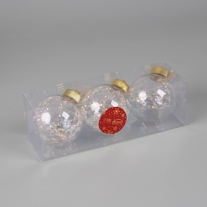 Набор шаров пластик d-8 см, 3 шт "Джотто" перламутр прозрачный