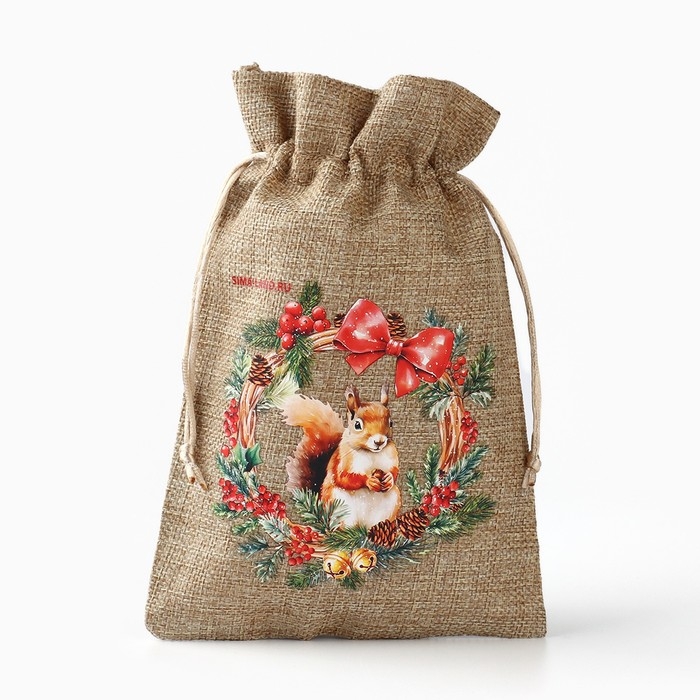 Мешок подарочный с термонаклейкой «Новогодний венок», 16 х 24 см , Новый год