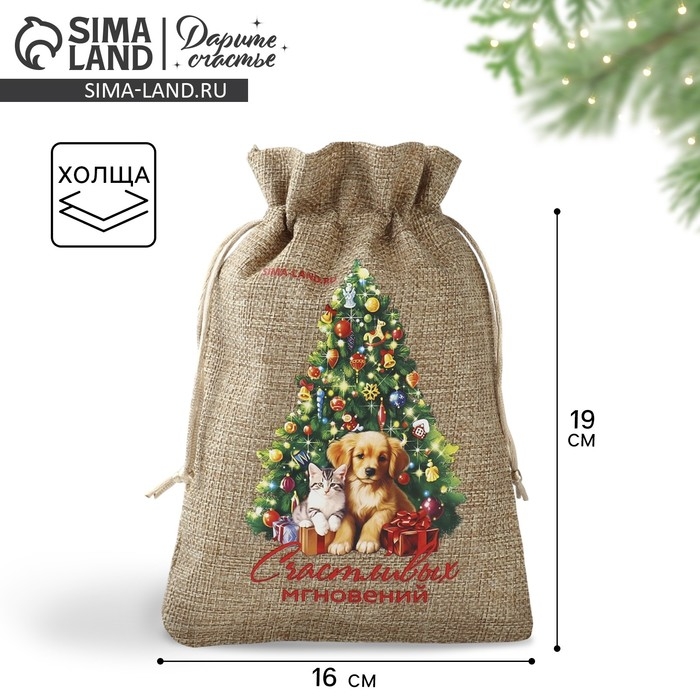 Мешок подарочный с термонаклейкой «Счастливых мгновений», 16 х 24 см , Новый год