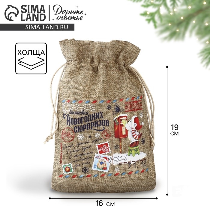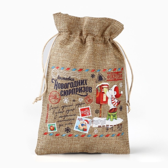 Мешок подарочный с термонаклейкой «Новогодняя почта», 16 х 24 см , Новый год