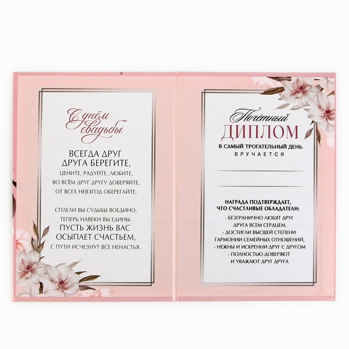Диплом «С Днем Свадьбы», А5, 21 х 15 см.