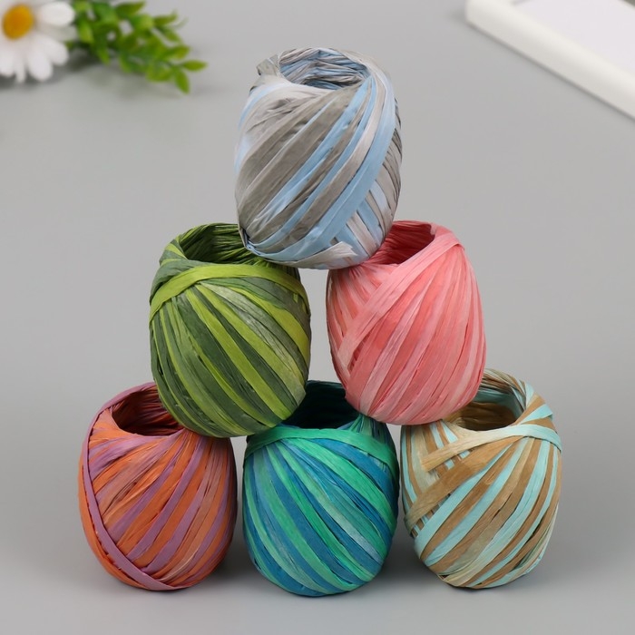 Тесьма декоративная бумага "Рафия меланж" намотка 20 м МИКС