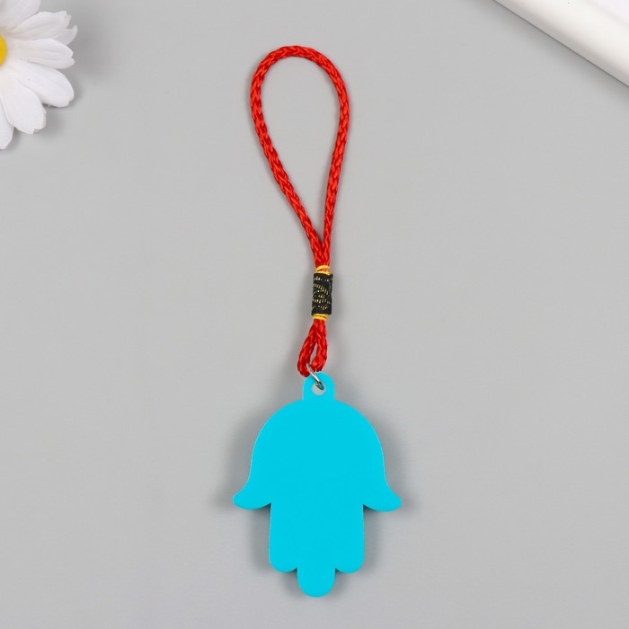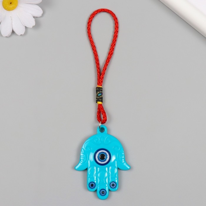 Подвеска от сглаза пластик "Рука Фатимы" голубая 6,1х4,6 см