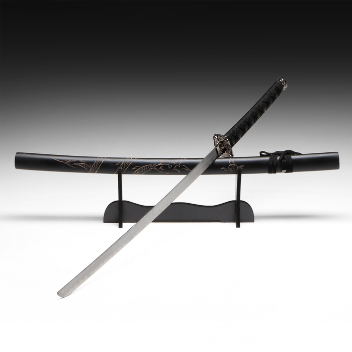 Сувенирное оружие «Катана на подставке», чёрные ножны с резным драконом, рукоять микс 100см