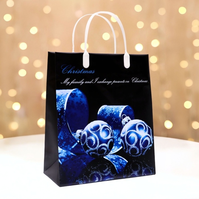 Новый год. Пакет новогодний "Лента и шары" мягкий пластик 26 х 23 см.