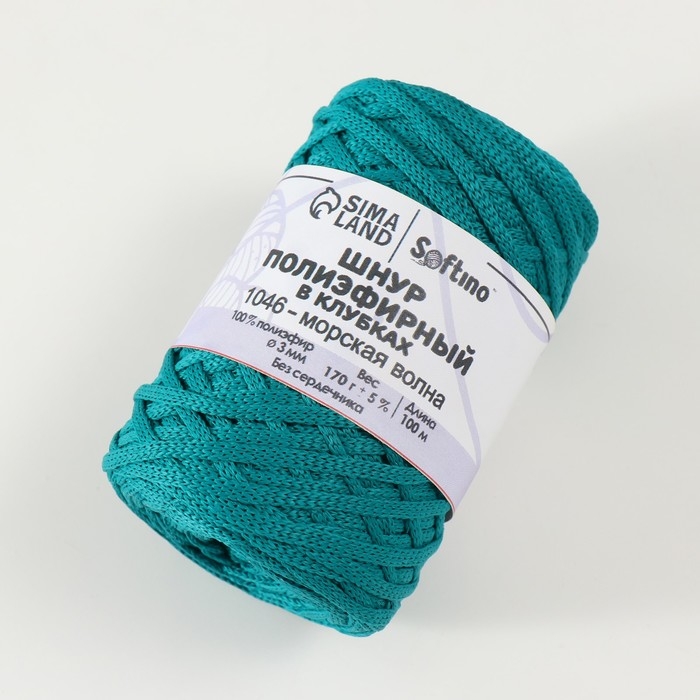Шнур плоский 3 мм полиэфирный в клубках 100м/170г (+/- 5%) морская волна - 1046