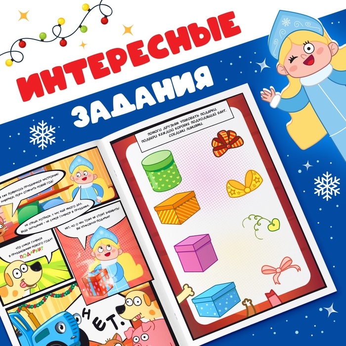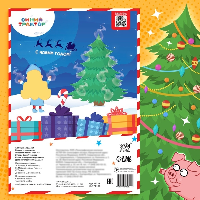 Комикс с заданиями «Первый Новый год», А4, 20 стр., Синий трактор