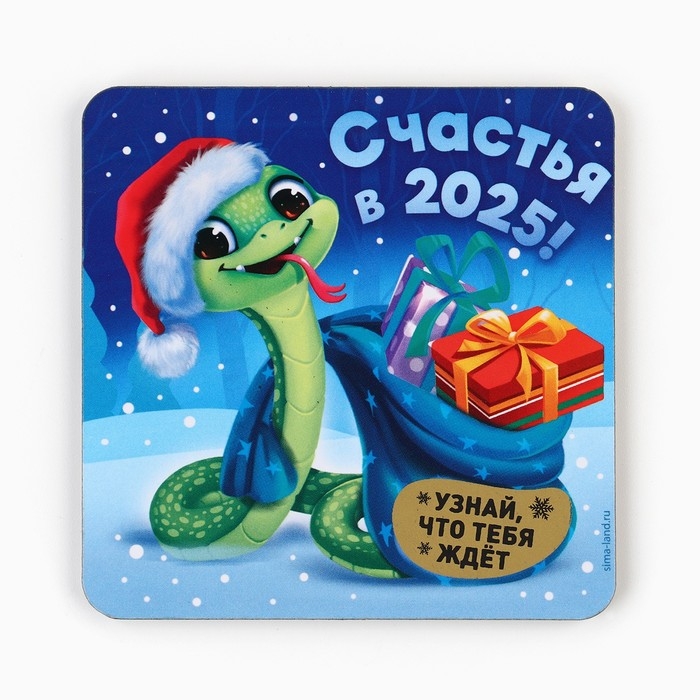 Магнит новогодний дерево со скретч-слоем «Новый год: Счастья в 2025», 8 х 8 см