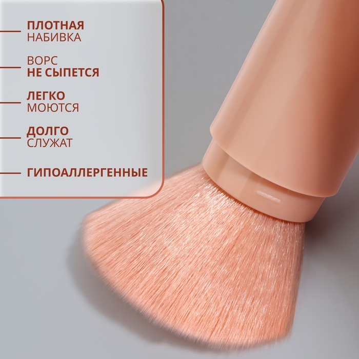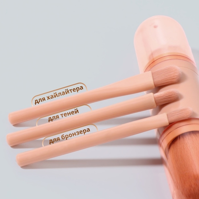 Набор кистей для макияжа «Франция», 7 предметов, на кнопке, цвет бежевый/розовый