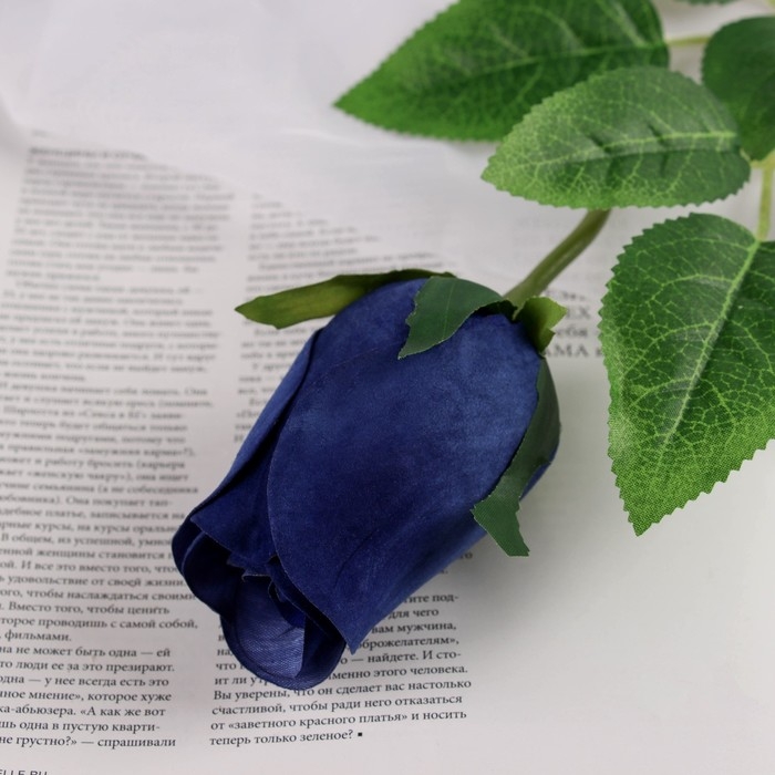Цветы искусственные "Роза бутон бархат" 43 см, (бутон-h-7см) синий