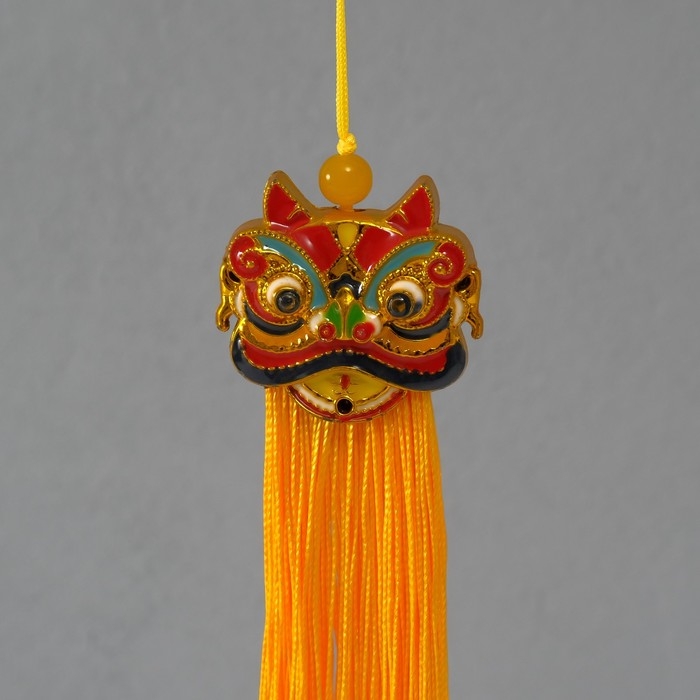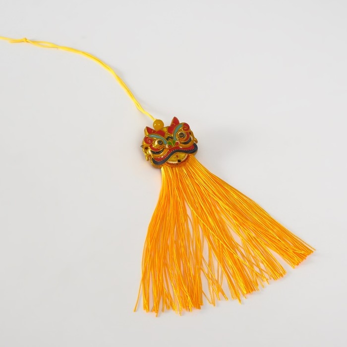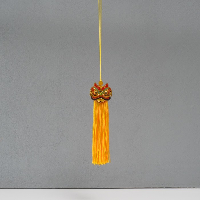 Подвеска текстиль, пластик "Китайский лев" жёлтая 2х4х14 см