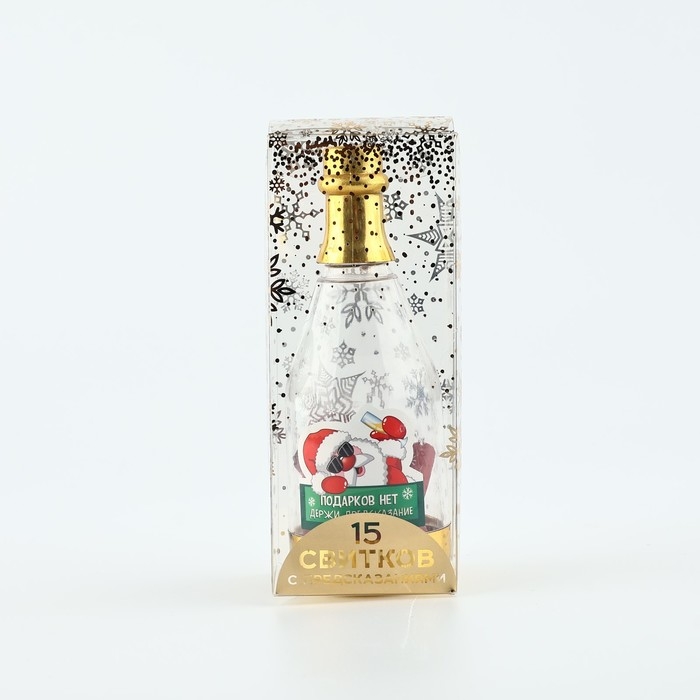 Новогодние пожелания в бутылке «Новый год: Подарков нет, держи предсказание», 15 свитков, 12х5см