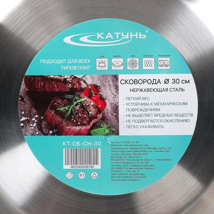 Сковорода «Общепит», d=30 см, толщина корпуса 0,6 мм, дно 3,5 мм, с теплораспределительным слоем, индукция
