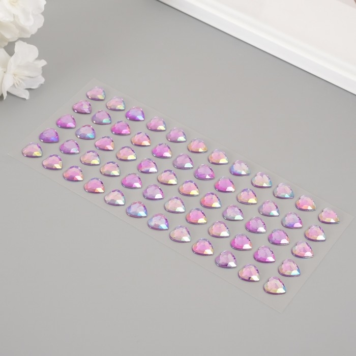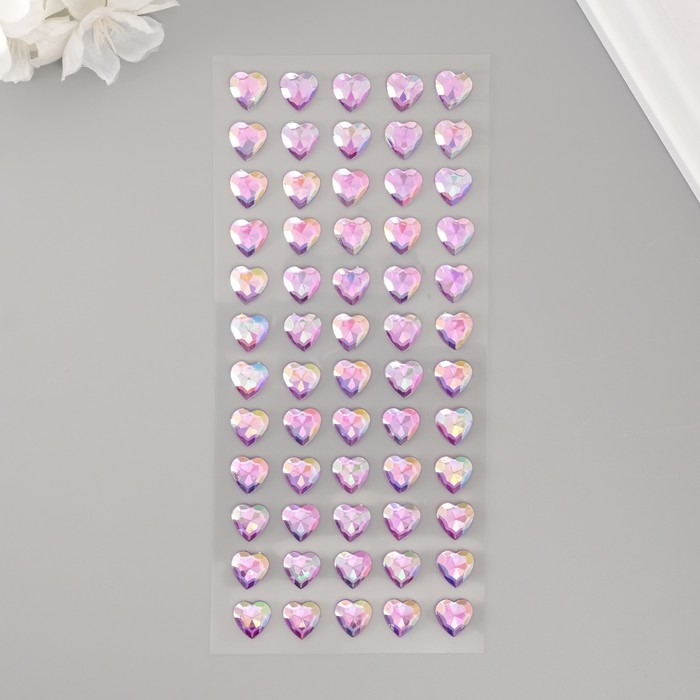 Наклейка пластик стразы "Сердце" фиолетовый перламутр 18х8 см