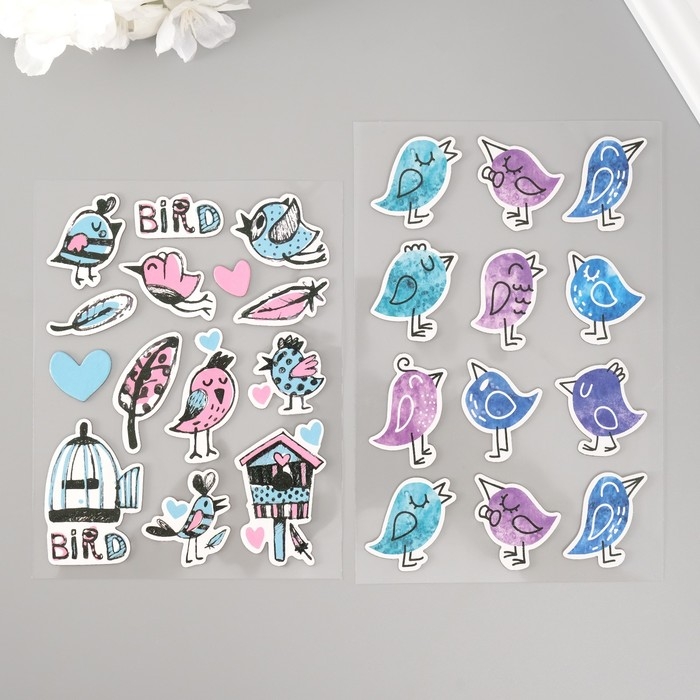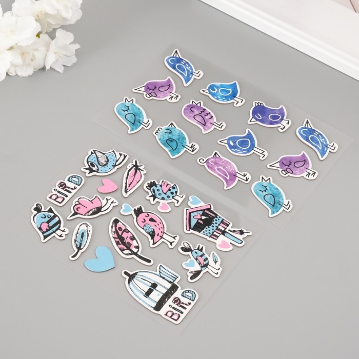 Наклейки для творчества "Птички" набор 2 листа 22х12,5 см