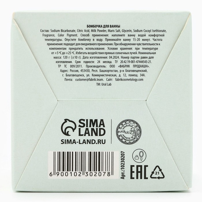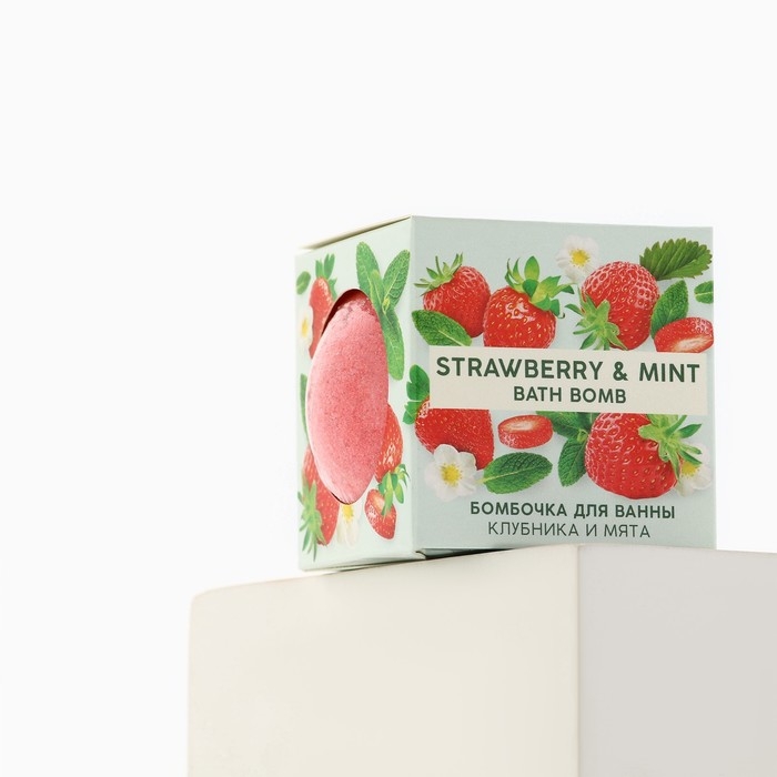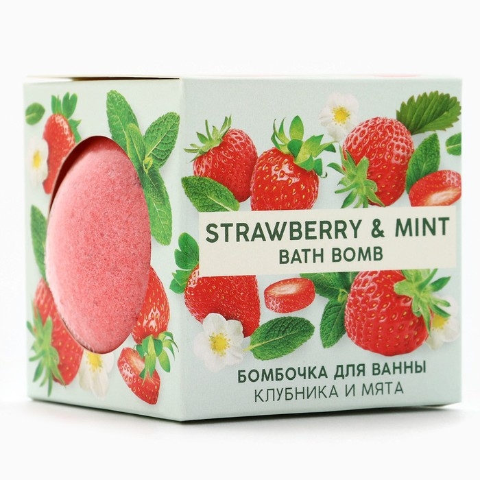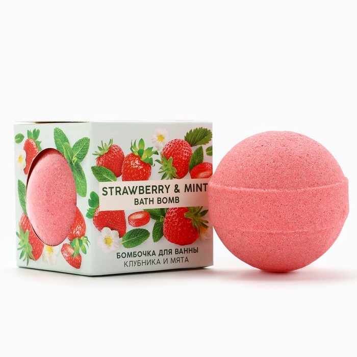Бомбочка для ванны, 130 г, аромат клубники и мяты, TROPIC BAR by URAL LAB