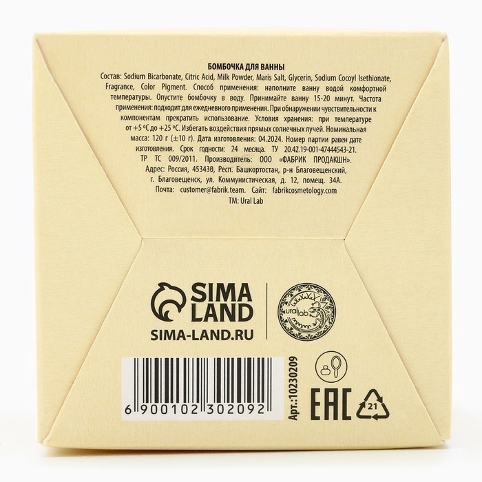 Бомбочка для ванны, 130 г, аромат спелого манго, TROPIC BAR by URAL LAB