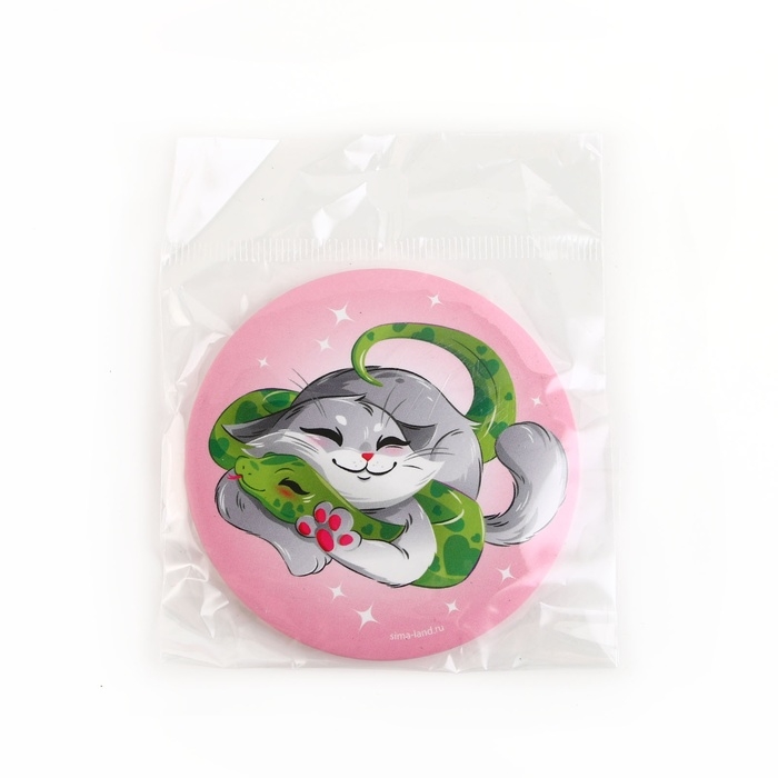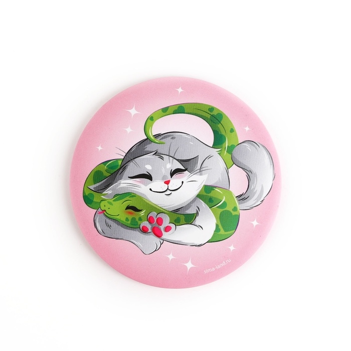 Зеркало карманное новогоднее «Новый год: Котенок», диам.7 см