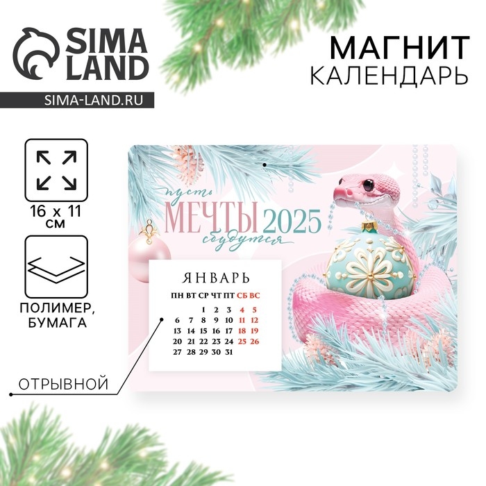 Календарь 2025 новогодний с отрывным блоком «Новый год: Мечты сбудутся», 16 х 11 см