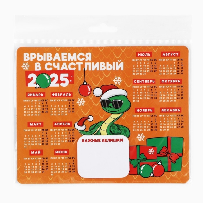 Новогодний магнит Календарь 2025 с блоком «Новый год: Счастливый 2025», 15 х 12 см, новогодняя серия